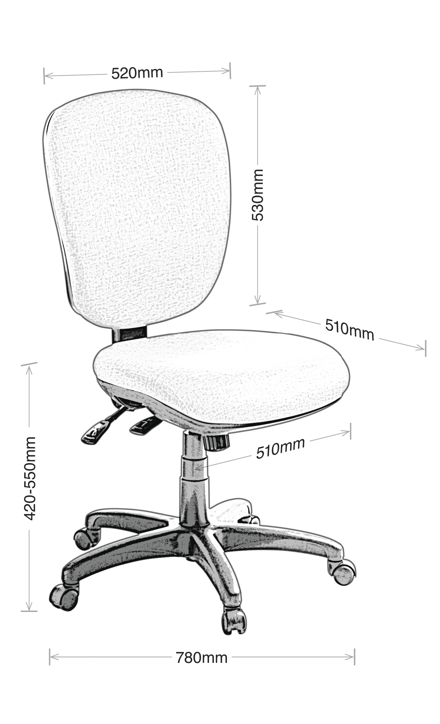 - Backrest size: 530mm(H) x 520mm(W)