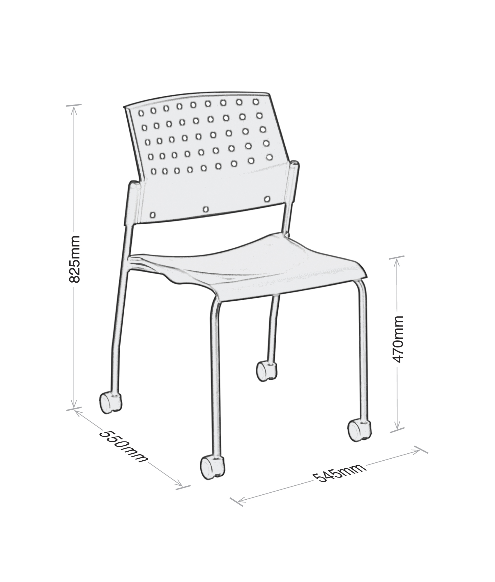 550 4-LEG ON CASTORS, SEAT UPHOLSTERED