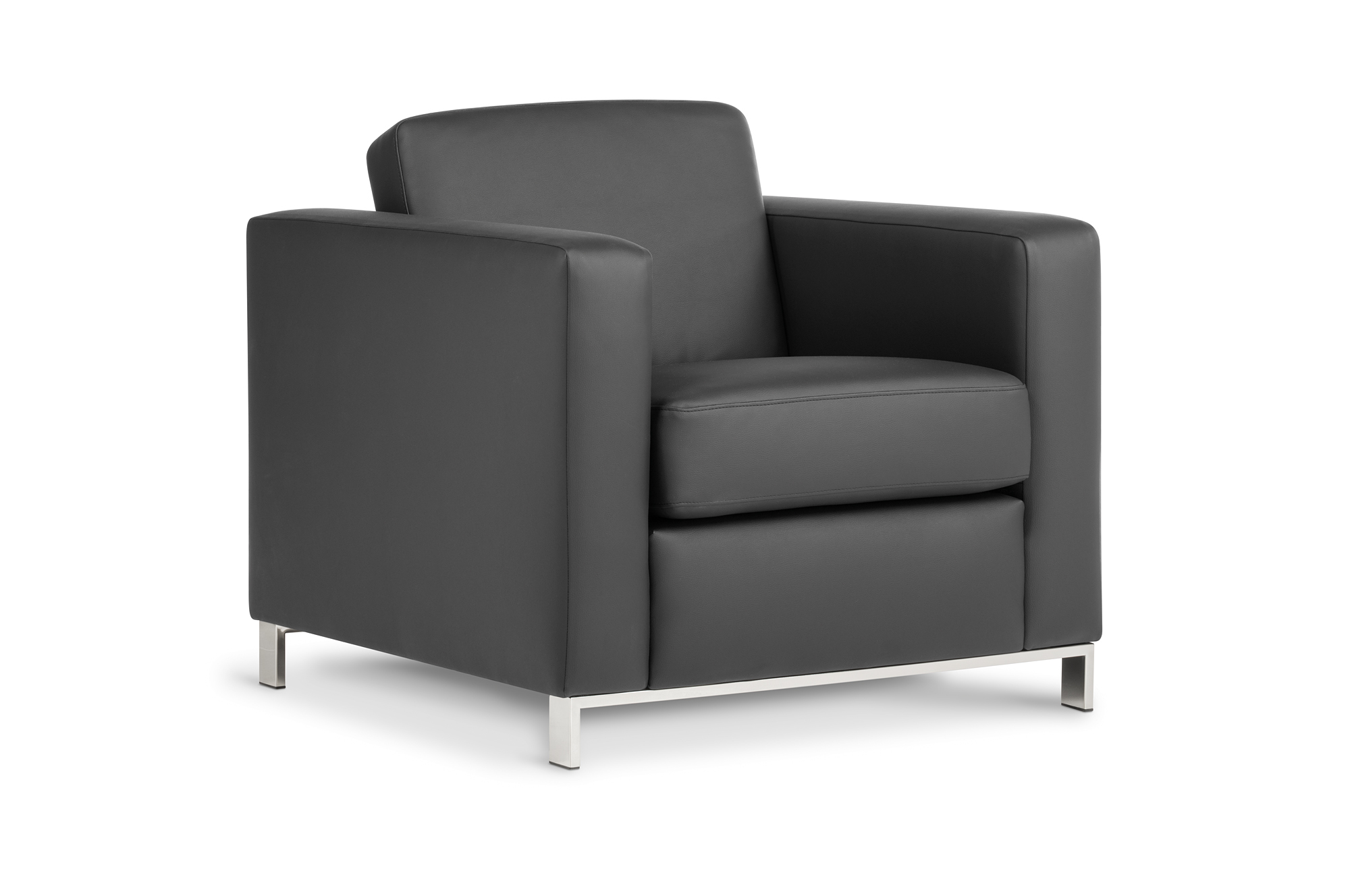 Carlo is a classic waiting-area duo featuring generous sizing, spring-seat comfort, and a smart black and chrome finish.