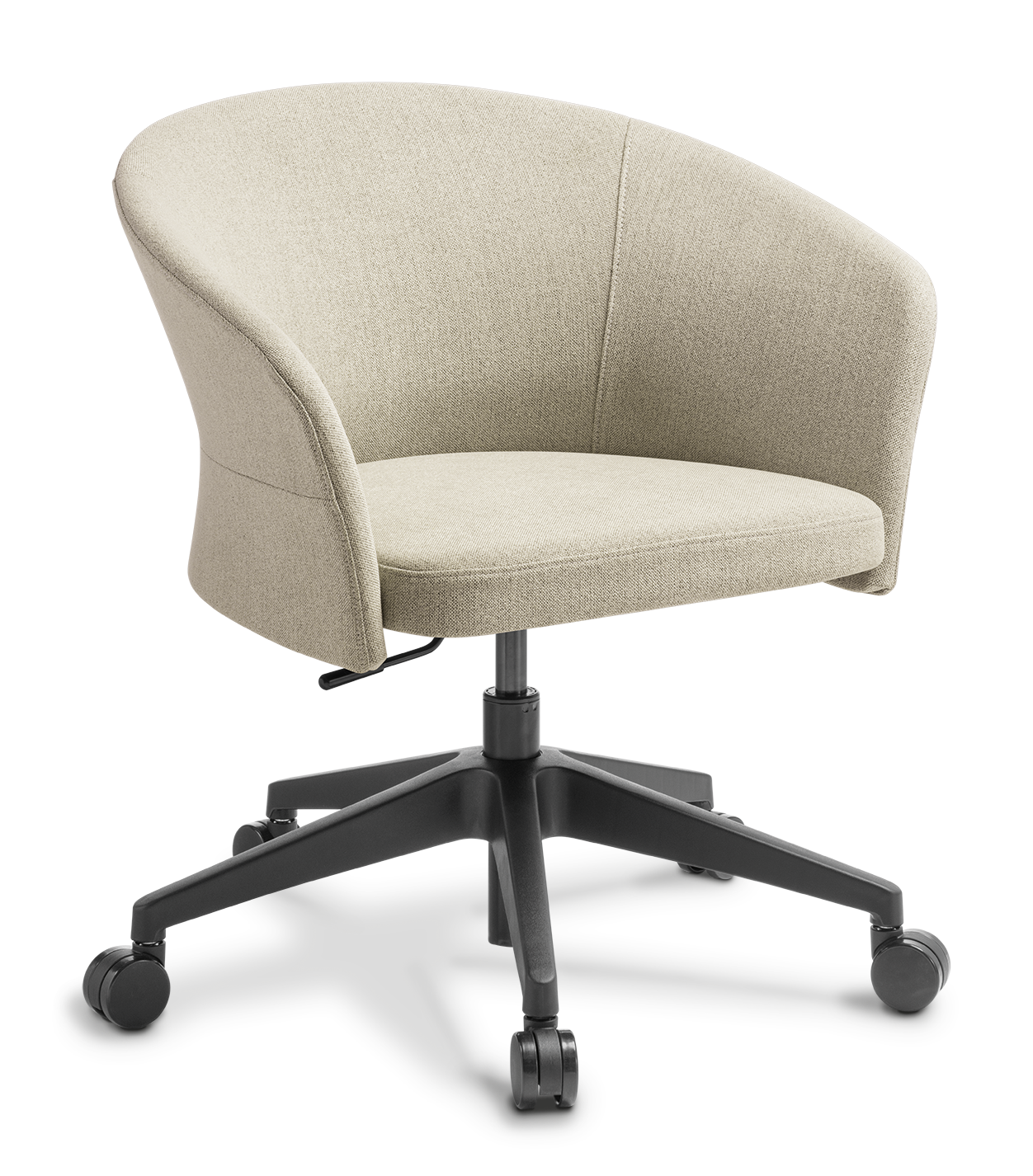 Clove comes with 4-leg or 5-star swivel base, and in standard Oatmeal, Warm Grey or Moss polyester fabric, and can be upholstered to order in fabric or vinyl of your choice.