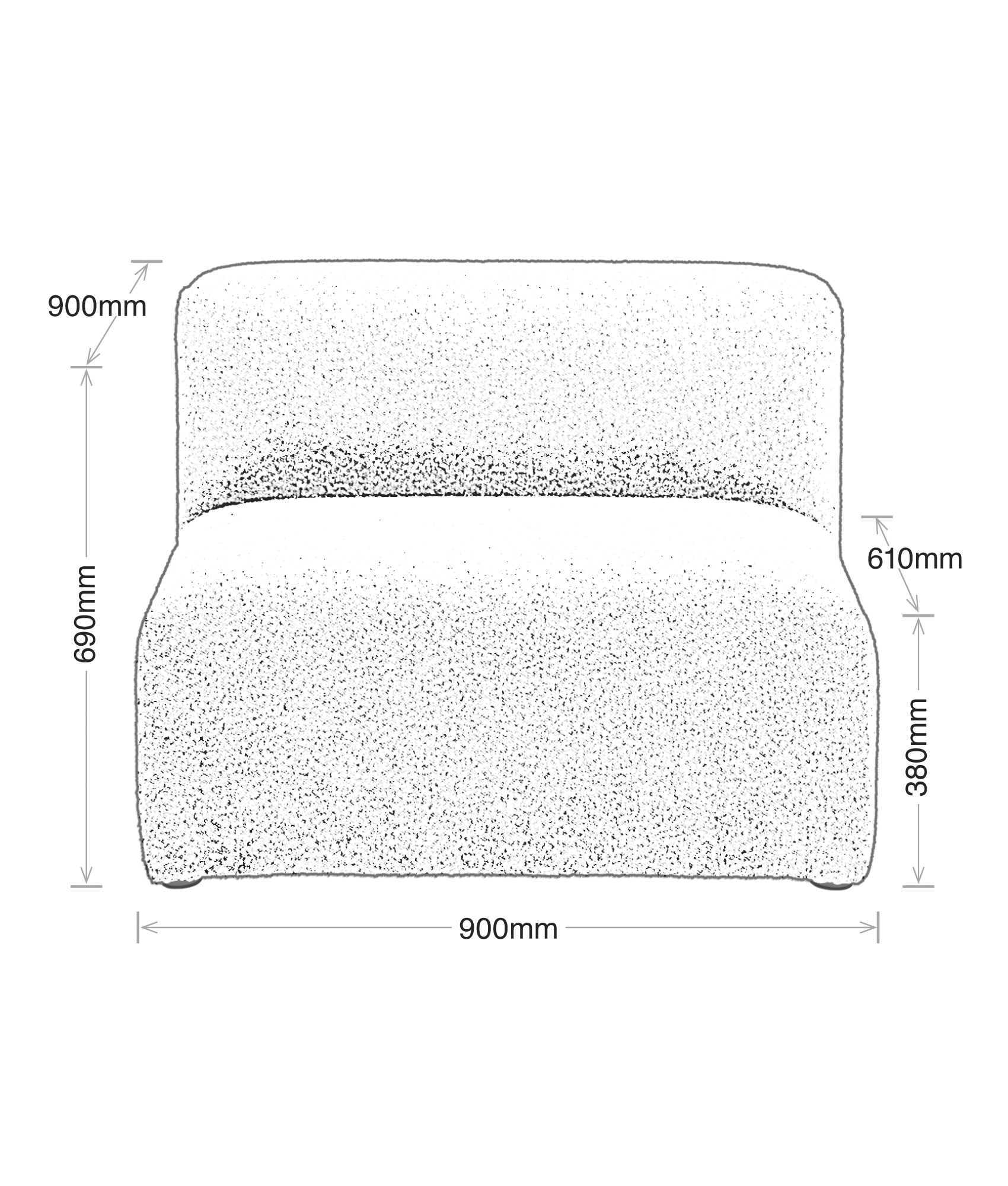 - Corner: 690mm x 900mm x 900mm x 380mm
