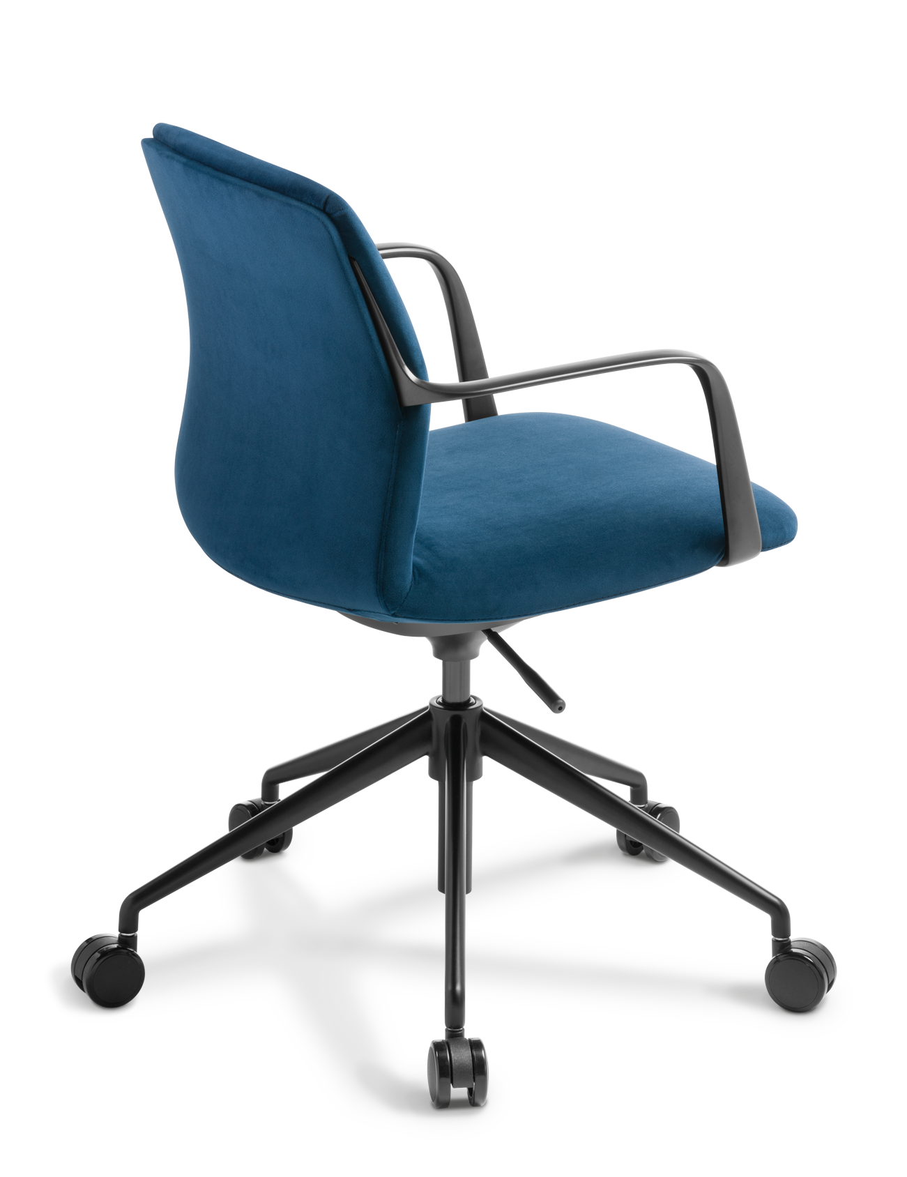 Esprit pairs a sleek black aluminium frame with an uncomplicated supportive shaped shell that is upholstered to order in the covering that you choose. It is height adjustable and features a smart agile dynamic-float mechanism. Compact and versatile it is designed to be personalised to your space.