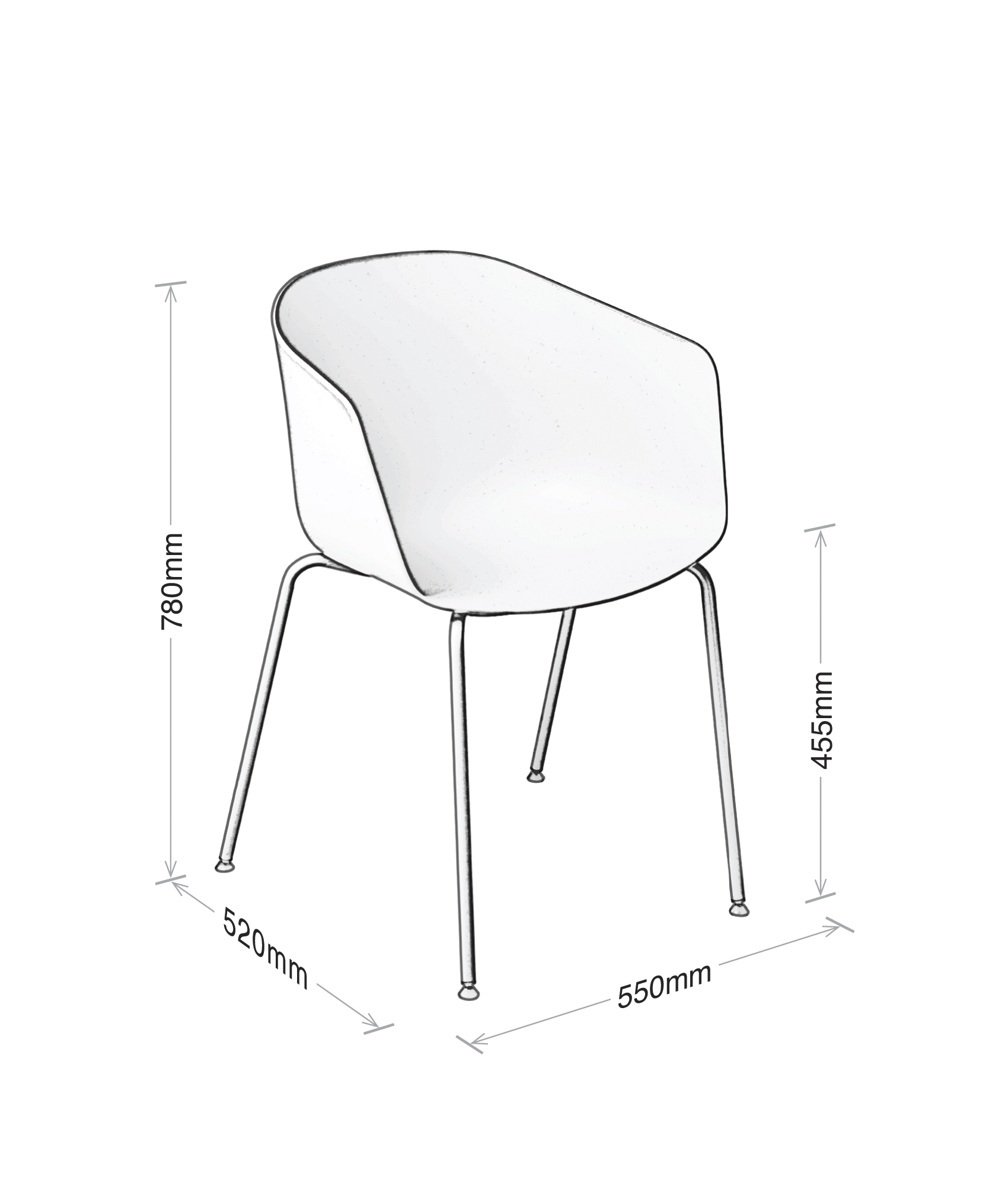 - Seat height: 455mm