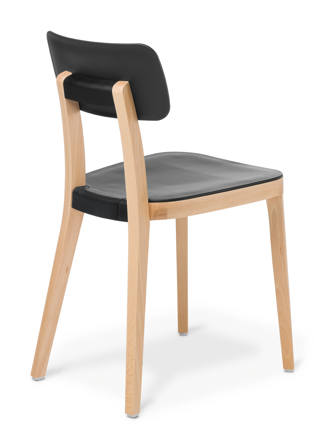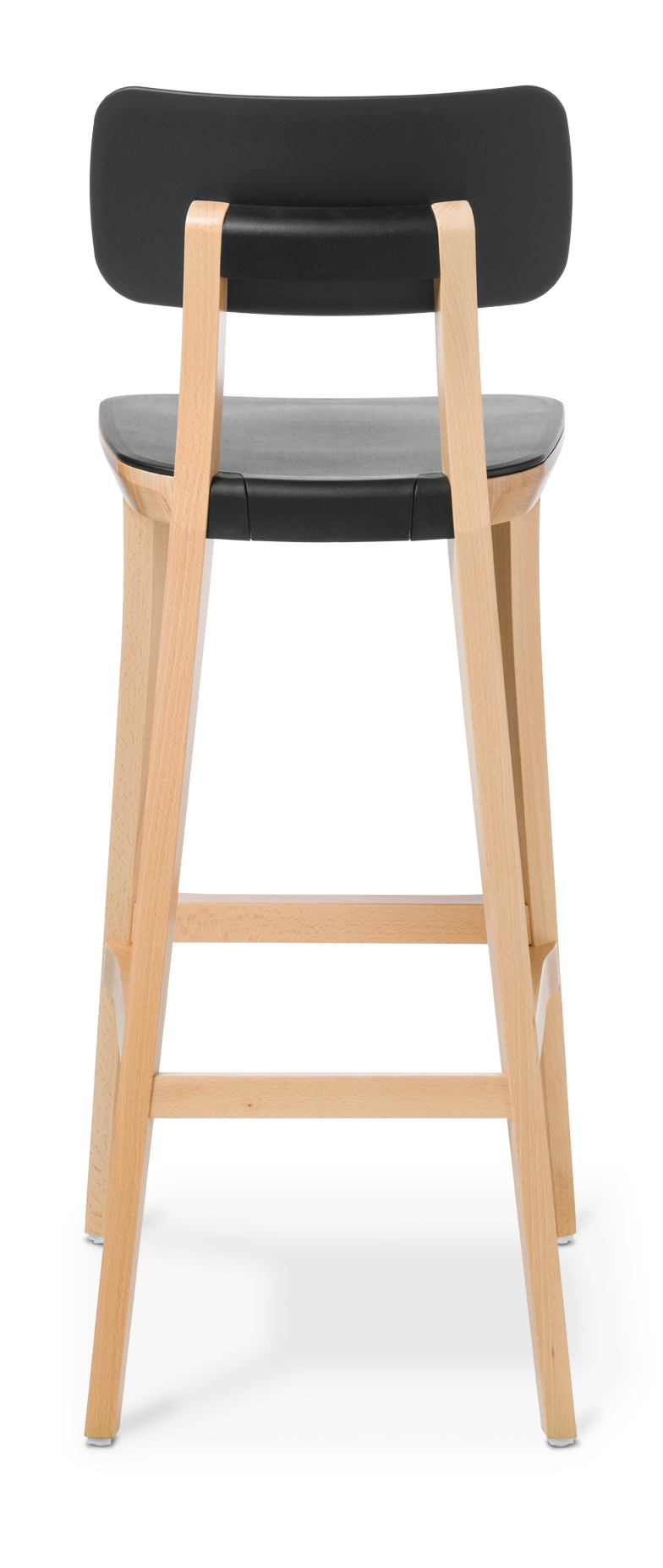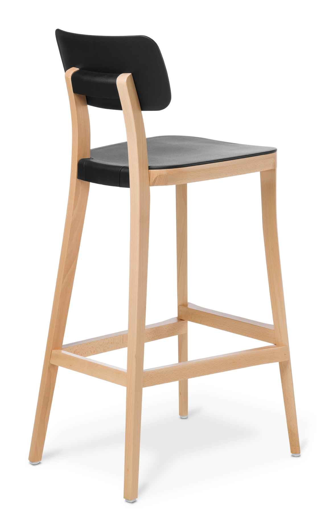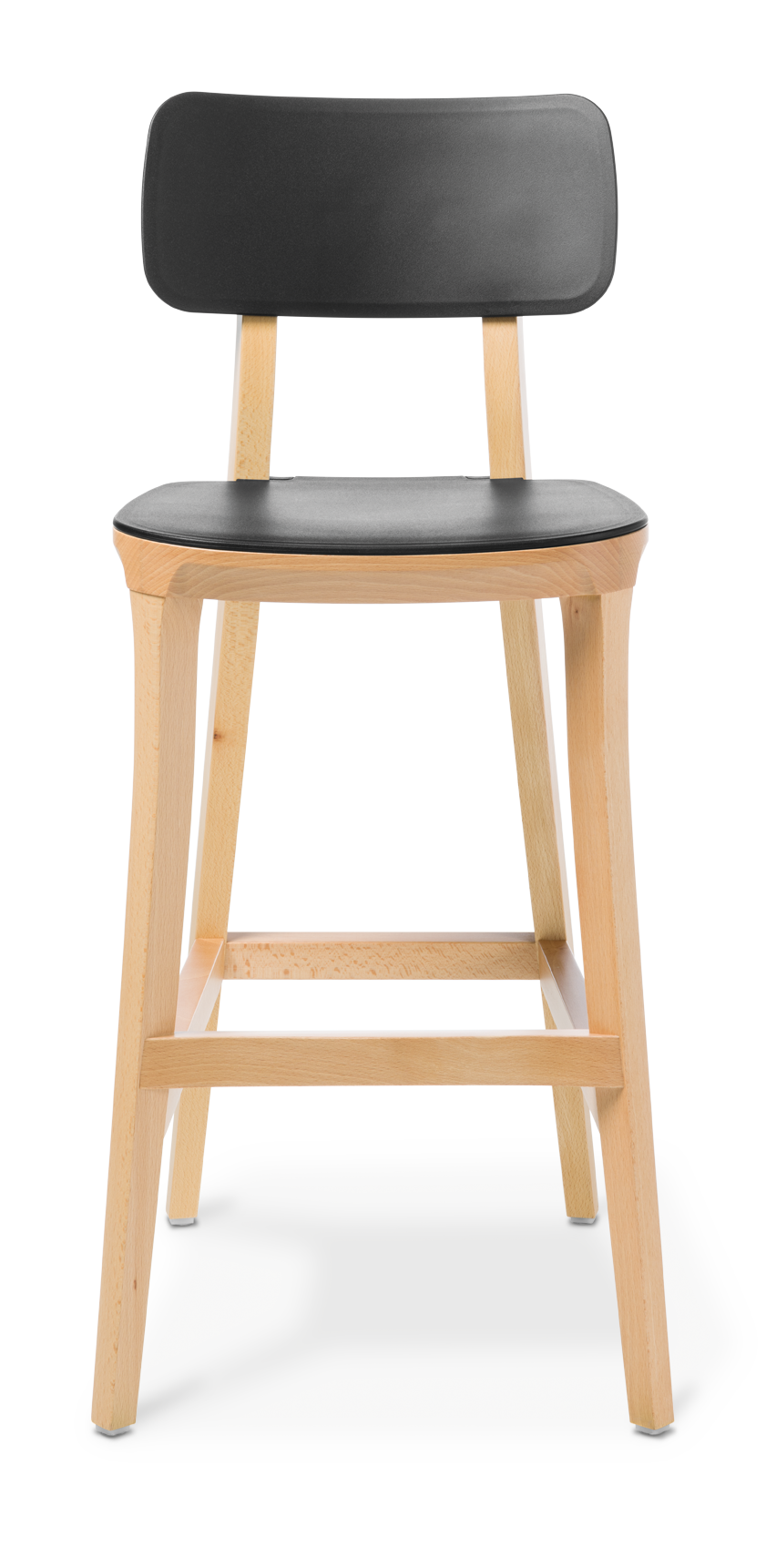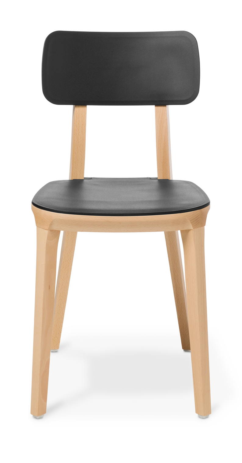 The Polka range features a chair and two stools, with supportive-shaped backrest and seat in polypropylene and a sleek styled frame in natural timber.