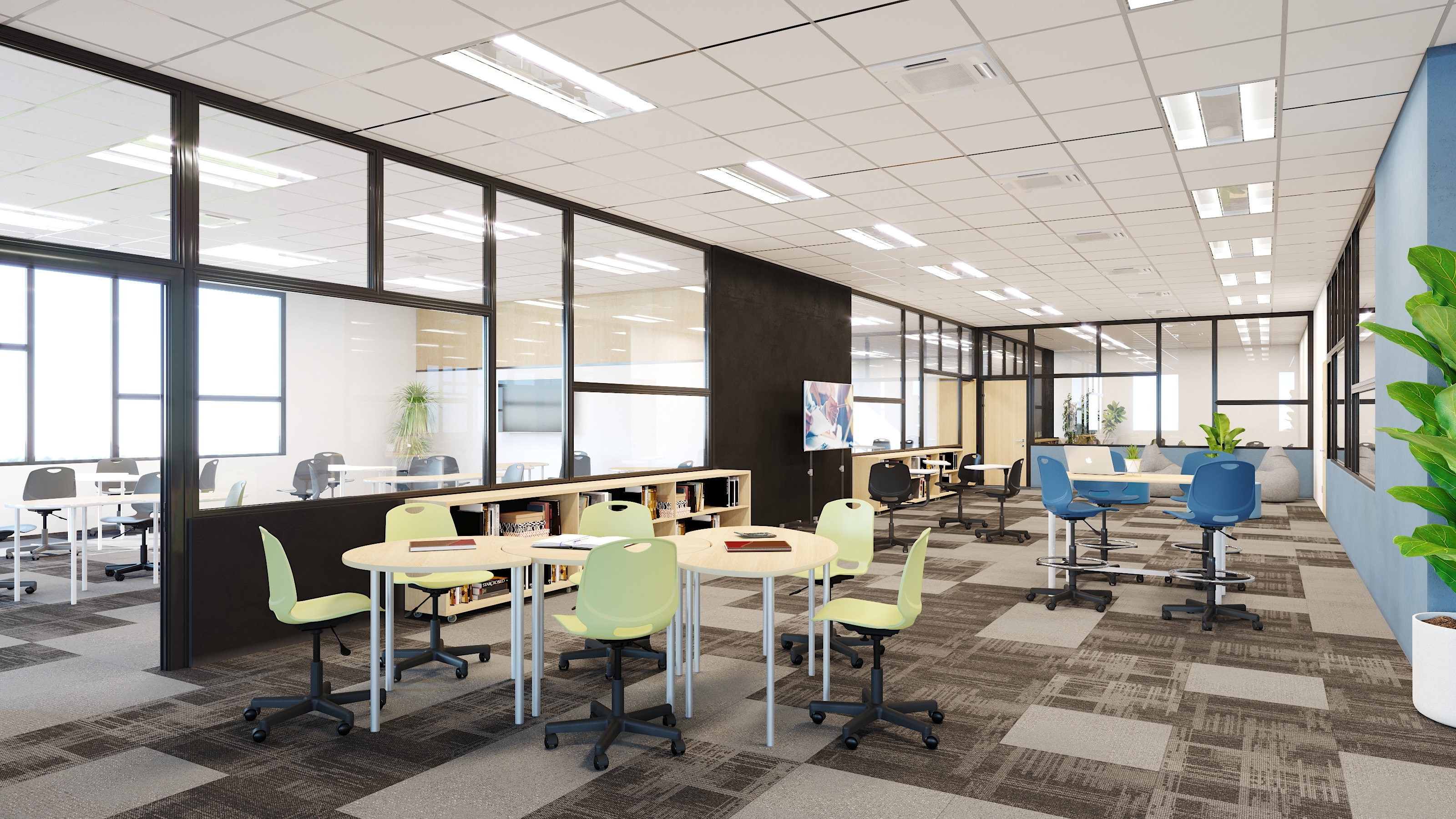 A heavy-duty stacking and swivel chair designed for education spaces.